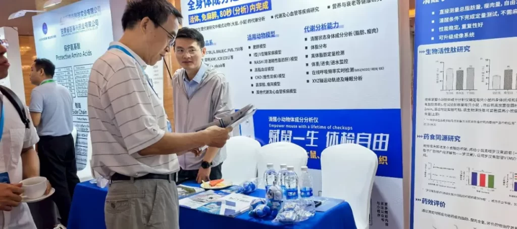 时博平台(中国)ios/安卓版/手机app下载展台展示的清醒小动物体成分分析技术,能够对活体模式动物进行无创、免麻醉的全身扫描。仅需80秒,即可精准获得脂肪、肌肉、体液等关键成分的定量数据。这项技术正在帮助研究人员在运动生理代谢、营养与衰老等健康研究中,实现对同一实验动物的长期、动态追踪,极大提升了数据可靠性,并充分体现了动物福利。